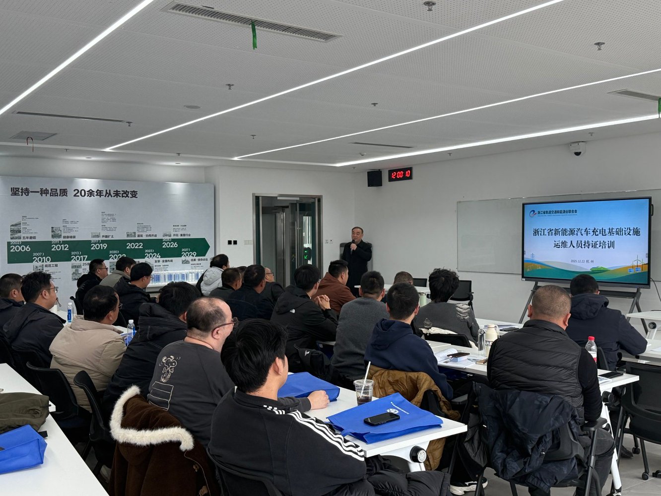 发布时间:2025-12-29 点击次数:7512月26日,浙江省轨道交通和能源业联合会主办的新能源汽车充电基础设施运维人员持证培训班在杭州地铁实训基地顺利收官,33名来自全省行业相关领域的从业人员顺利结业。